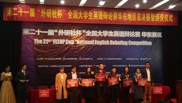 我校学生获第二十一届“外研社杯”全国大学生英语辩论赛华东赛区三等奖