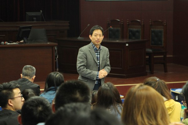 5月12日,由文学院举办的西海岸法学大讲堂“动产担保物权法编纂建议”于文理楼142模拟法庭举行。此次讲座由中国海洋大学法政学院繁荣工程教授董学立主讲,kaiyun官网法学系主任秦勇主持,院长王学栋、法学系副主任董岩、法学系副教授田国兴及其他法学系教师出席。