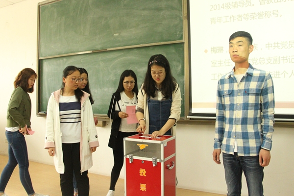 按照学院党委要求,根据《中国共产党章程》和《中国石油大学(华东)基层党组织换届选举工作办法》的规定,5月14日,中国石油大学(华东)文学院学生党总支换届选举大会在南教110举行。会议由文学院学生党总支副书记梅琳主持,文学院党委副书记、学生党总支书记邹维忠、团委书记赵振华、辅导员杜文倩、于露以及全体学生党员参加。