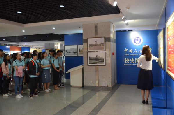 在校史馆讲解员的带领下,营员们对我校的发展历史和发展历程有了深入的了解。讲解员的讲解和图片的陈列向营员们展示了我校浓厚的历史文化底蕴。“惟真惟实”的校训、“实事求是,艰苦奋斗”的校风和“勤奋、严谨、求实、创新”的学风让营员们体会到了我校在历史发展中形成的办学治学特色。在讲解完学校的历史发展后,讲解员带领营员们到今日石大,向全体营员介绍了我校的建设情况和发展蓝图,彰显了我校“不忘初心,砥砺前行”的奋斗精神。