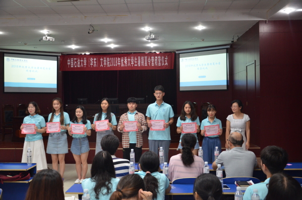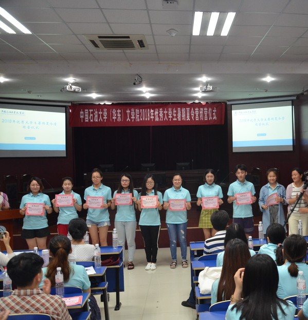 随后,文学院2018年大学生暑期夏令营闭营仪式正式开始。魏学宝老师代表全院师生表达了对全体夏令营成员的肯定和赞许,希望全体营员报考文学院,与文学院共同发展进步。法学专业营员孔令辉和汉语国际教育专业营员刘雪雪作为优秀营员代表做闭幕仪式发言。孔令辉和刘雪雪对学院提供本次夏令营的机会表示感谢,同时也感谢各专业老师们的指导和交流。通过本次夏令营,他们坚定了读研深造的决心,进一步明确了自己以后的职业规划。最后,颁发优秀营员证书,各专业导师代表向本次夏令营取得优秀营员称号的营员颁发证书。