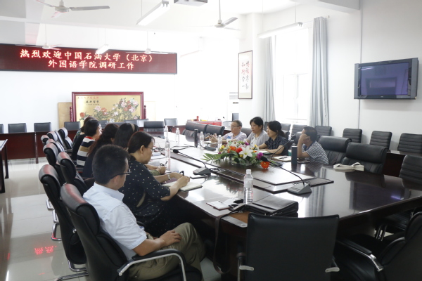 会谈双方主要围绕专业和公共英语教学,针对课程设置、分级教学管理、教材使用、网络课程建设、教师职业发展、基层教学组织建设、英语教学研究、双学位办学、翻译硕士培养等诸多方面进行了深入的学习交流,大家一致认为在学校大背景的影响下,双方的办学具有一定的相似性,都存在学生第一志愿率不高、教师教学压力大、学科特色有待加强等问题,但经过多年发展,双方又各有所长,值得相互借鉴。kaiyun官网英语专业经过不断努力,本科生毕业设计得到很大改进,本科实践教学取得了较好的效果,学生的专业认同感增强,而中石油(北京)在教学质量监控、研究生能力培养等方面则积累了丰富的经验。未来双方需要加强交流合作,共同推进资源的共建共享,互相取长补短,以推动大学英语教学的改革与创新。