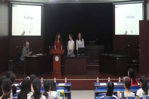 7月20日上午,英语语言文学系在模拟法庭开展“研究性教学实践成果展示及交流”活动。活动由加拿大萨斯喀彻温大学英语系教授、创意写作硕士学位点负责人David John Parkinson 博士主持,文学院多位教师参加。