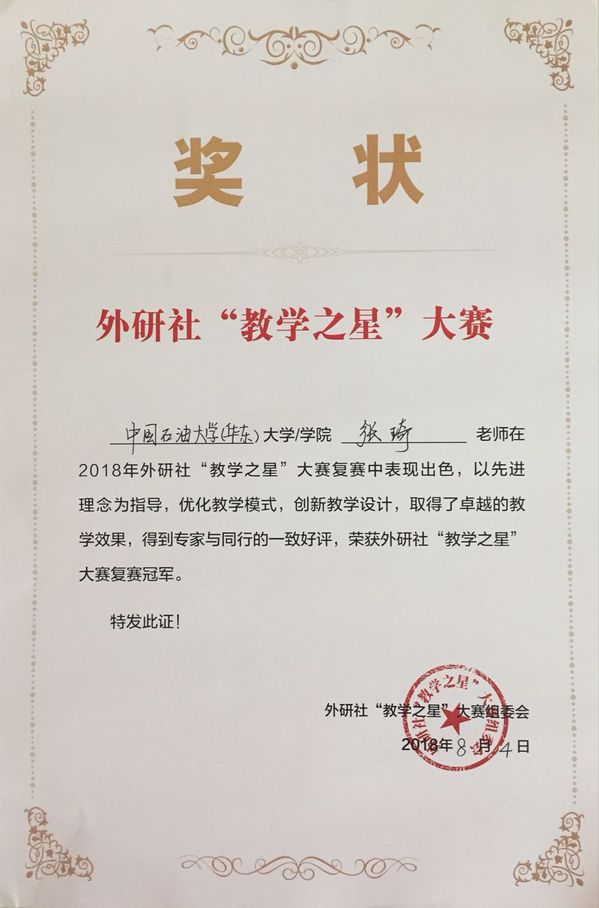 此次大赛中,大学英语组共有7个分赛场,近400名来自全国各高校的大学外语教师参赛,最终角逐出14位教师参加全国总决赛,我校张琦老师表现优异并成功晋级全国总决赛;英语专业组共有4个分赛场,150名来自全国各高校的英语专业教师参赛,我校付晓老师荣获一等奖。