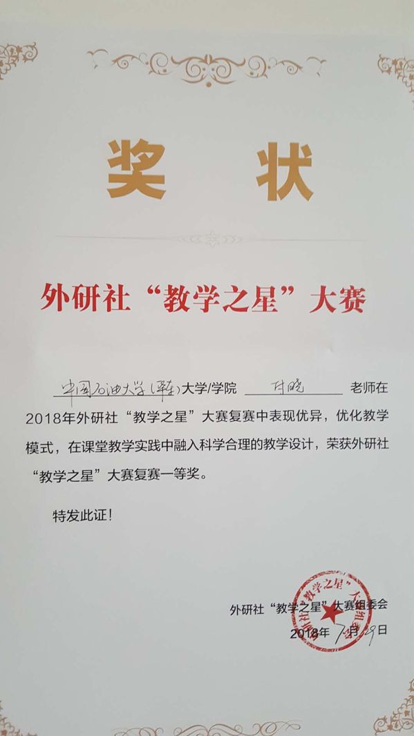 2018年外研社第五届“教学之星”大赛大最后一场比赛于8月4日成功落下帷幕。kaiyun官网大学英语一系教师张琦荣获大学英语组复赛冠军并成功晋级十二月的全国总决赛,英语语言文学系教师付晓荣获英语专业组复赛一等奖。