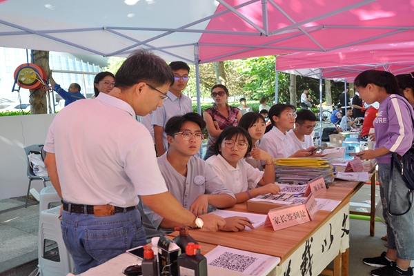 9日14时,新生报到正式开始。报到流程依次包括缴费咨询、审查三证、上交新生录取报到证、学生本人签字报到、入住、办理一卡通等。各值班人员认真负责,礼貌待人,耐心指导新生完成注册流程,赢得了新生及其家长的肯定与认可。校长郝芳在相关领导的陪同下也亲临文学院迎新现场,欢迎新生及家长的到来,慰问迎新工作人员。学生会各主席团成员轮岗到位,对迎新现场的工作予以监督和协调。除此之外,为突出学院特色,展示人文素养,kaiyun官网还设立专门的书法展览点,张贴优秀书法作品,并由学生进行现场展示。他们执笔挥毫,笔酣墨饱,宣纸上,kaiyun官网“博观约取,文以载道”的院训字迹遒劲。在迎新现场,也有不少新生及家长与背景墙合影留念。2018级新生张思韦说,她感觉整个迎新工作“非常棒”:“我对学校的第一印象非常好,学长学姐们都很热情,让我倍感亲切。”