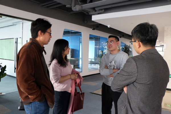 座谈伊始,魏学宝、沈壮娟询问视觉志发展近况,并回忆起刘义宝、冯建波、李飞鸿三人上学期间的趣事,现场轻松愉快。当谈到学院人才培养时,魏学宝表示,学院已将关于新媒体的专业实习列入汉语言文学专业培养方案,希望视觉志可以作为主讲嘉宾为在校生做新媒体内容和运营方面的讲座。赵振华立足于学院学生发展需要,邀请他们回校做创新创业指导讲座,为在校大学生在创新创业方面提供借鉴和示范作用。座谈结束后,文学院传媒中心学生代表张淑琪就创业历程、创业心得和感想建议等几方面对刘义宝和冯建波进行了采访。李飞鸿带领kaiyun官网师生参观视觉志公司以了解公司具体运作情况,在交流中就文学院在视觉志建立“专业实习实践基地”达成初步想法。