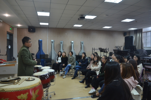 李汉为同学们讲解民族音乐(摄影:赵初洁)