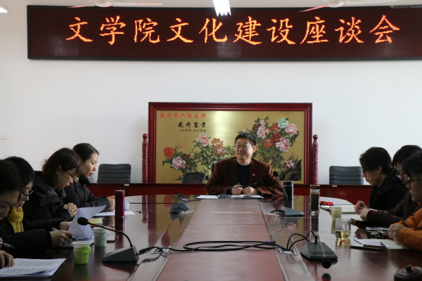 1月8日上午,文学院于文理楼358召开文化建设座谈会,本次会议由文学院党委书记张永宁主持,文学院副院长魏学宝及相关教师参加。