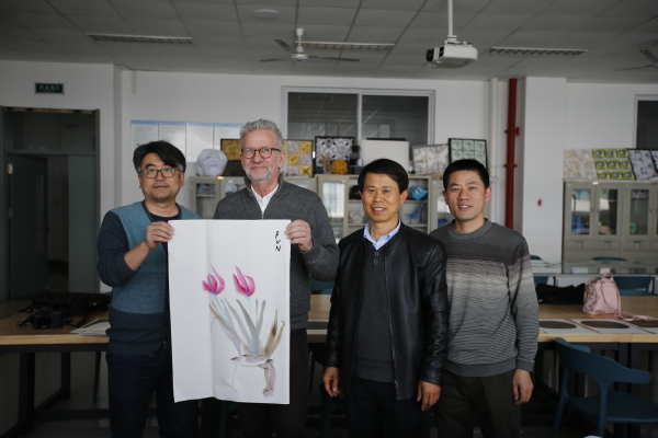3月26日,山东青岛中国石油大学(华东),丹麦工程院院士彼得•维•尼尔森(Peter V. Nielsen)在进行学术交流之余,来到该校美术系,和王成宝、孙峰等美术系教师进行中国传统美术艺术交流,领略历史悠久的中国艺术和博大精深的中国文化。