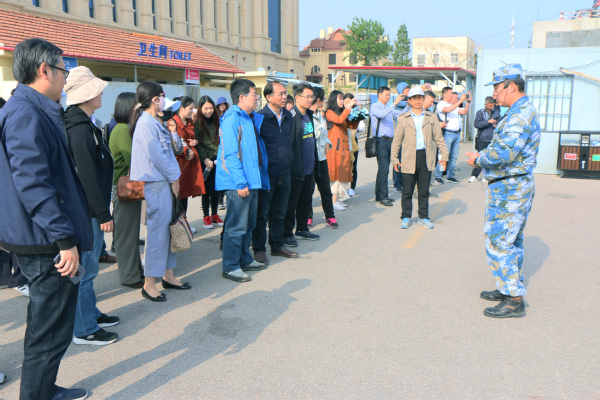 第二站是海军博物馆,在海军博物馆武器装备展区,解说员向大家详细介绍了苏特34中型坦克、鹰击-83舰舰导弹阅兵车、青六水上飞机、伊尔-14运输机、02型鱼雷快艇等陈列武器的性能及历史故事。“中国海军成立70周年之际,实体参观容易带来直观认识,从而切身体会并深入了解人民海军的战斗历程和建设成就。”文学院团委书记赵振华说。随后,大家登上驱逐舰以及导弹护卫舰参观。
