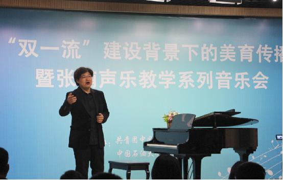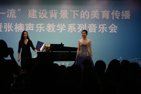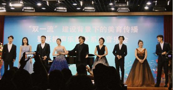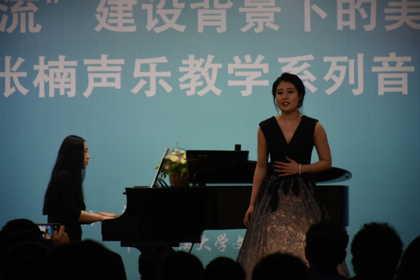 音乐会上,张楠从题目开始讲解本次音乐会:“‘双一流’是学校工作的中心和重心,全校正在全面全力围绕建设‘双一流’高校开展工作。我们的老校长杨光华先生曾提出要加强全校学生的艺术教养素养。美育是一个宽泛而又深奥的概念,作为声乐老师,只能取其中的一个点,这就是声乐。”近日教育部发文,要求各高校强化艺术普及教育,提升艺术专业教育。通过本次音乐会,有利于让声乐专业的学生在舞台上得到锻炼和提高,同时将声乐教学的成果让全校大学生感受美育的传播。此次音乐会本着尊重声乐艺术的本源,没有采用借助任何的电声设备。本次音乐会演唱了中外不少优秀歌曲,如《玫瑰三愿》《我的意中人》《暮春》《负心人》《一首桃花》等。最后,张楠同全体学生演唱《我和我的祖国》,现场气氛高涨。汉语1802的胡祎青表示:“这是一场很愉悦的体验,张楠老师不愧是一位艺术家,参演人员也很热爱这个舞台,都是在很投入的演唱。”