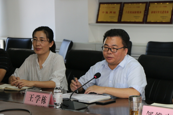 随后,任伟一行莅临文学院,文学院院长王学栋从我校法学专业的历史发展、专业建设、师资队伍、学科特色、科学研究、教学资源、社会服务等方面汇报了我校法学学科专业建设的概况,表示学院将以国家“双万计划”为发展方向,强化学科基本建设,为申报法学一级学科博士点积极创造条件。他希望山东省法学会加强对基层单位的工作指导,从法学研究的方向、目标、责任等方面加以引导,把握方向,提供思路;多搭建平台促进省内高校之间的联合,发挥省级学会的号召力和组织力;在科研立项、科研评奖、科研成果发表与推广,以及法治社会服务方面继续支持学院法学学科专业建设,提升青岛作为山东法学教育重要基地的国内国际影响力。