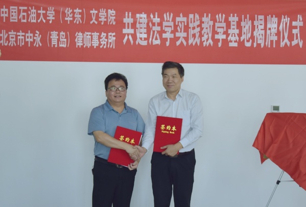 9月22日上午,中国石油大学(华东)文学院与北京市中永(青岛)律师事务所共建法学实践教学基地签约揭牌仪式,在北京市中永(青岛)律师事务所举行。文学院院长王学栋、法学系主任秦勇、法学系副主任董岩,《山东科技大学学报(社会科学版)》执行主编董兴佩、齐鲁法制网青岛站主任鹿新国、北京市中永律师事务所主任计永胜和部分律师出席此次签约揭牌仪式。