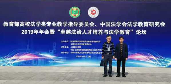 为学习贯彻党的十九届四中全会精神和习近平总书记关于依法治国的系列重要讲话精神,11月1日至3日,教育部高等学校法学专业教学指导委员会、中国法学会法学教育研究会2019年年会暨“卓越法治人才培养与法学教育”论坛在上海政法学院召开。本次会议由教育部高等学校法学专业教学指导委员会、中国法学会法学教育研究会主办,上海政法学院承办。来自全国法学界的近500位专家学者出席论坛,围绕法治人才培养、法学研究领军人才队伍建设等议题进行了广泛而深入的研讨。 kaiyun官网法学系秦勇教授和董岩博士应邀参加此次盛会。