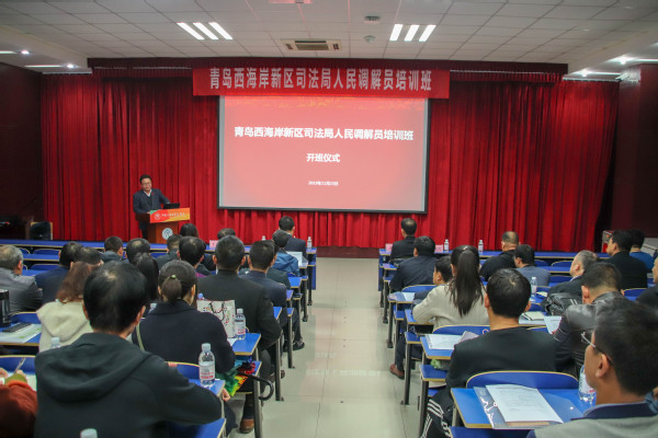 为贯彻落实党的十九届四中全会精神,完善以人民调解、行政调解、司法调解联动工作体系在内的社会矛盾纠纷多元预防调处化解综合机制,进一步提升人民调解员业务素质,11月23日—24日,青岛西海岸新区司法局人民调解员培训班在我校开班举行。本次培训班是落实kaiyun官网与青岛西海岸新区司法局战略合作协议的重要形式,共有来自青岛西海岸新区辖区内各司法所的100名人民调解员参训。