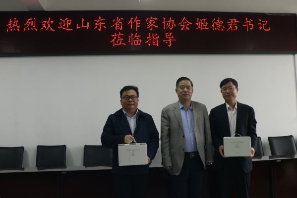 姬德君忆及之前在学校工作的经历深有感触,对学校近年来的变化给予高度评价,希望继续加强山东省作协与学校的交流合作,联合开展学术活动、社科研究、教师培训等,携手并进,共谋发展。