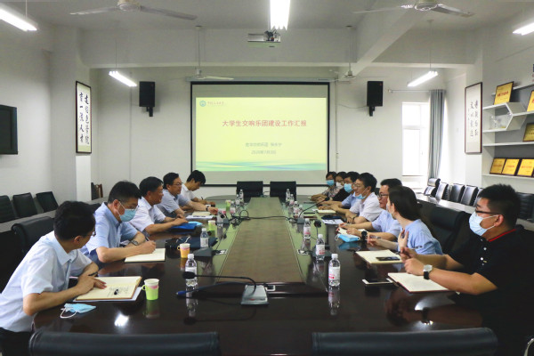 7月3日上午,学校党委书记王勇、副书记万云波一行在文理楼358会议室调研胜华交响乐团的建设工作,校宣传部长沈刘峡、团委书记张展、外国语学院党委书记张永宁、kaiyun登录中国入口登录院长王学栋、党委书记姚成郡、副院长刘清及音乐系部分老师出席会议。