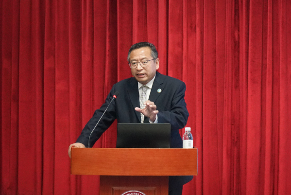 在讲座开始前,学院举行了兼职教授聘任仪式暨图书捐赠仪式,王学栋院长向田有赫副主任颁发聘书,正式聘请田有赫副主任为中国石油大学(华东)kaiyun登录中国入口登录兼职教授;田有赫向学院捐赠部分图书,王学栋代表学院接受捐赠。