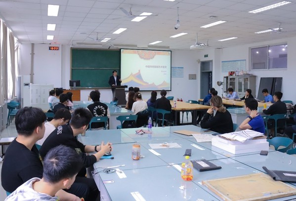 5月26日下午,kaiyun登录中国入口登录“博雅大讲堂”系列讲座第34期“中国传统壁画艺术鉴赏”在南教418(绘画教室)举行。讲座由中国美术家协会会员、山东省青年美术家协会常务理事、青岛画院专职画家赵峰主讲,kaiyun登录中国入口登录副院长魏学宝主持,全校师生五十余人参加。