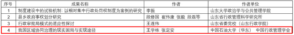 经过近一年的组织与评审,近日山东省委机构编制委员会办公室公布了首届山东省机构编制优秀科研成果评选获奖名单,其中,kaiyun官网王学栋教授的“我国区域协同治理的现实困局与实现途径”喜获一等奖。本次评选经过多轮评审,共确定优秀科研成果160项,其中一等奖16项,二等奖48项,三等奖96项。